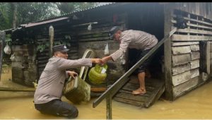 Selain melakukan patroli, personel Polsek Indra Makmu juga membantu masyarakat, seperti mengangkat barang – barang milik warga yang terendam banjir serta memberikan bantuan beras kepada warga yang terdampak.
