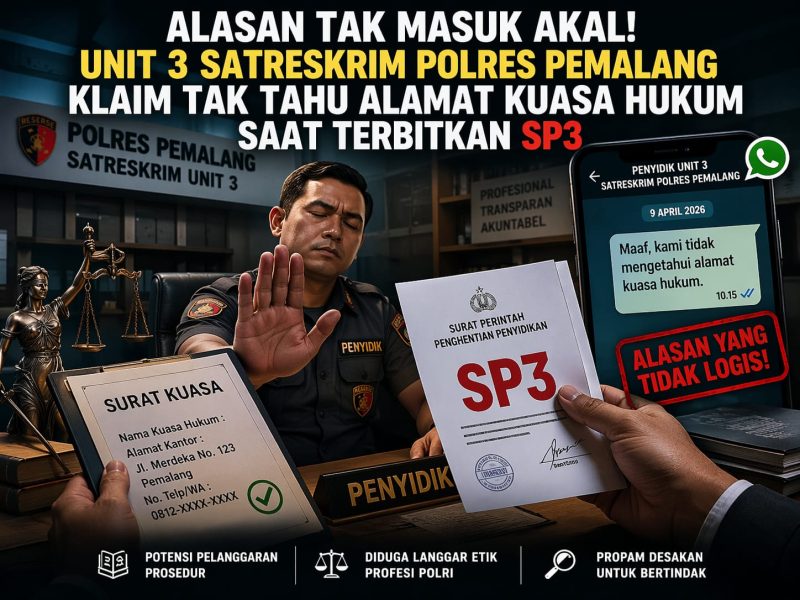 Pemalang — Kinerja penyidik Satreskrim Unit 3 Polres Pemalang kembali menjadi sorotan publik. Kali ini, polemik muncul dari penerbitan Surat Perintah Penghentian Penyidikan (SP3) yang dinilai janggal, baik dari sisi prosedur maupun transparansi.