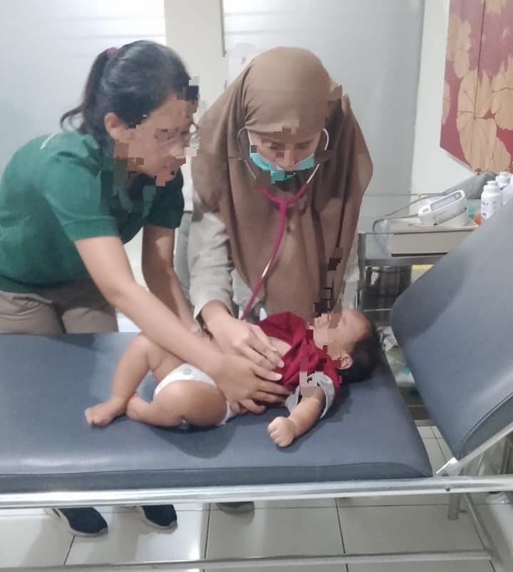 Dalam foto yang beredar, terlihat seorang dokter wanita dengan mengenakan hijab dan masker sedang memeriksa sang bayi, dibantu oleh seorang perawat.