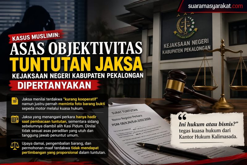 Pekalongan — Penanganan perkara yang melibatkan terdakwa Muslimin bin Suheri kembali menjadi sorotan. Kuasa hukum dari Kantor Hukum Kalimasada secara tegas mempertanyakan konsistensi jaksa dari Kejaksaan Negeri Kabupaten Pekalongan dalam menyusun tuntutan.