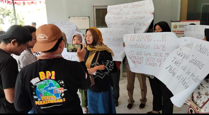 “Perminggu kita membayar iuran, ada yang 50 ribu, ada juga yang 100 ribu. Dari nasabah juga ada yang punya anggota, sehingga total kerugian kami di simpanan Safitri mencapai 653 juta rupiah”, kata Yuli didampingi kuasa Hukum Didik Pramono dari LBH Adhyaksa.