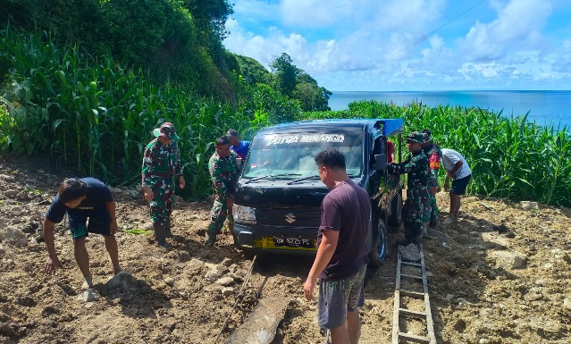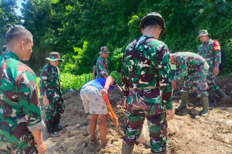 Dengan gotong royong, personel TNI bersama masyarakat setempat membuka akses jalan secara manual menggunakan peralatan seadanya. Jalan yang sempat terputus ini merupakan jalur penghubung antara Dusun Minanga dan Dusun Pasir Putih.