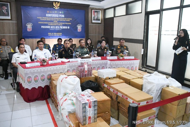 Dalam Press rilis tersbut Pengungkapan Kasus Tindak Pidana Cukai Peredaran Rokok illegal dengan hasil penindakan Gempur Rokok illegal tahun 2024 Total sebanyak 387.500 Batang.