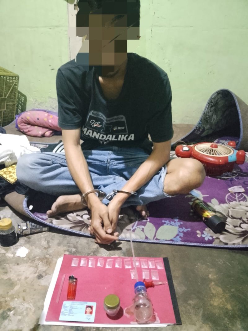 Hasil penggeledahan di dalam rumah dan kamar pelaku mengungkap 14 paket kecil narkotika golongan I jenis sabu dengan berat bruto 2,42 gram yang diduga kuat siap diedarkan. Polisi juga mengamankan sejumlah barang bukti pendukung berupa bong atau alat isap, korek api gas, potongan pipet, kotak kaca kecil, celana panjang, serta kartu identitas milik terlapor.