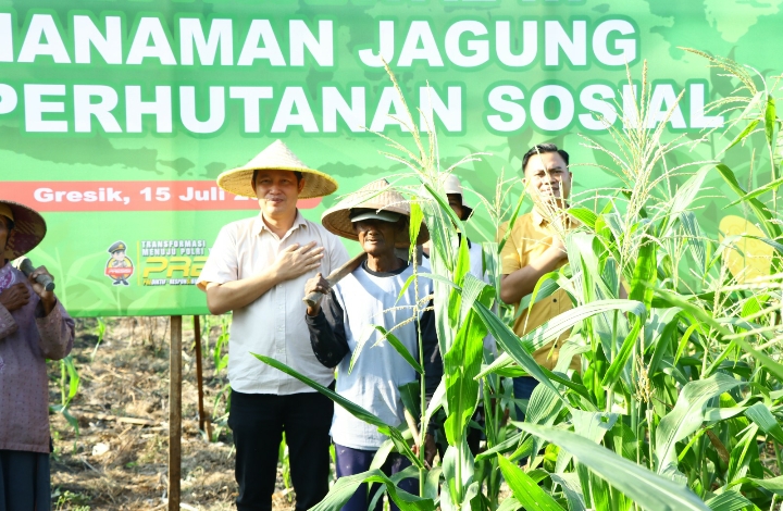 Dukung Ketahanan Pangan, Polres Gresik Gelar Penanaman Jagung Serentak di Lahan Perhutanan Sosial
