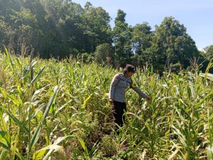 Dukung Swasembada Pangan, Bhabinkamtibmas Polsek Tinangkung Pantau Kebun Jagung di Desa Saiyong