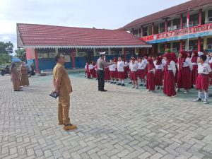 “Adik-adik harus mampu mengendalikan diri, tidak melakukan bullying, saling menghormati guru, serta menumbuhkan rasa kasih sayang antar sesama teman,” ujar Kanit Kamsel Satlantas Polres Banggai, Aiptu Saripudin, S.H., saat memberikan amanat upacara.