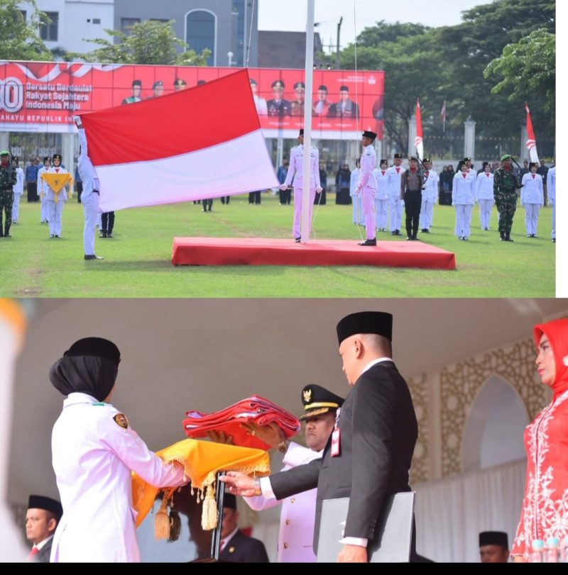 Ribuan masyarakat, unsur pemerintah daerah, TNI/Polri, pelajar, hingga tokoh masyarakat berkumpul mengikuti upacara pengibaran bendera merah putih memperingati Hari Ulang Tahun (HUT) ke-80 Kemerdekaan Republik Indonesia.