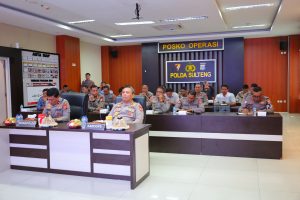 Kegiatan ini dihadiri Kapolda Sulteng Irjen Pol Dr Endi Sutendi yang diwakili oleh Wakapolda Brigjen Pol Dr Helmy Kwarta Kusuma Putra Rauf, Karo Ops, serta PJU Polda Sulteng di ruang aula Rupatama lantai I Polda Sulteng.