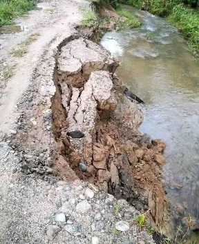 “Jalan di Dusun Pakuan sudah hampir putus, mohon kewaspadaan bagi pengendara roda empat,” tulis unggahan tersebut.