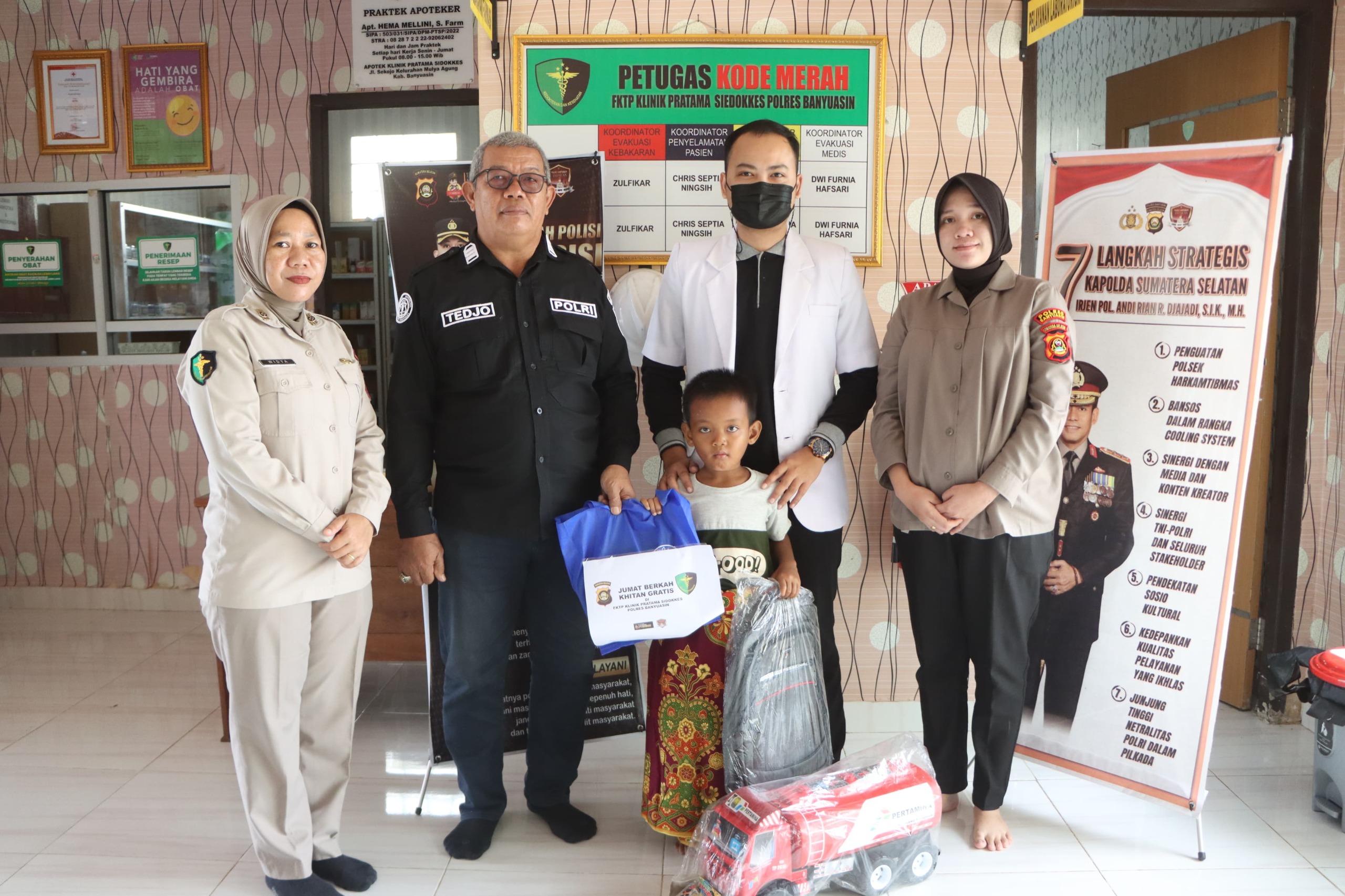 “Polres Banyuasin komitmen melakukan program khitanan gratis yang digelar setiap Jumat di Klinik Pratama Polres Banyuasin untuk warga yang kurang mampu. Syaratnya hanya membawa KTP atau Kartu Keluarga (KK),” jelas Ruri.