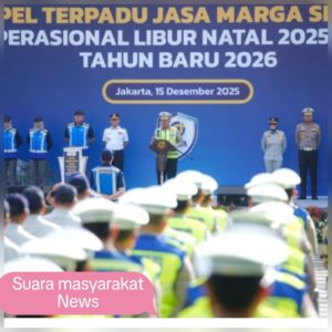 SUARMASYARAKAT.COM//Jakarta — Kakorlantas Polri Irjen Pol Drs. Agus Suryonugroho, S.H., M.Hum., memimpin Apel Terpadu Jasa Marga Siaga Operasional Libur Natal 2025 dan Tahun Baru 2026 yang digelar di Lapangan Sasono Utomo, Taman Mini Indonesia Indah (TMII), Jakarta, Senin (15/12/2025).