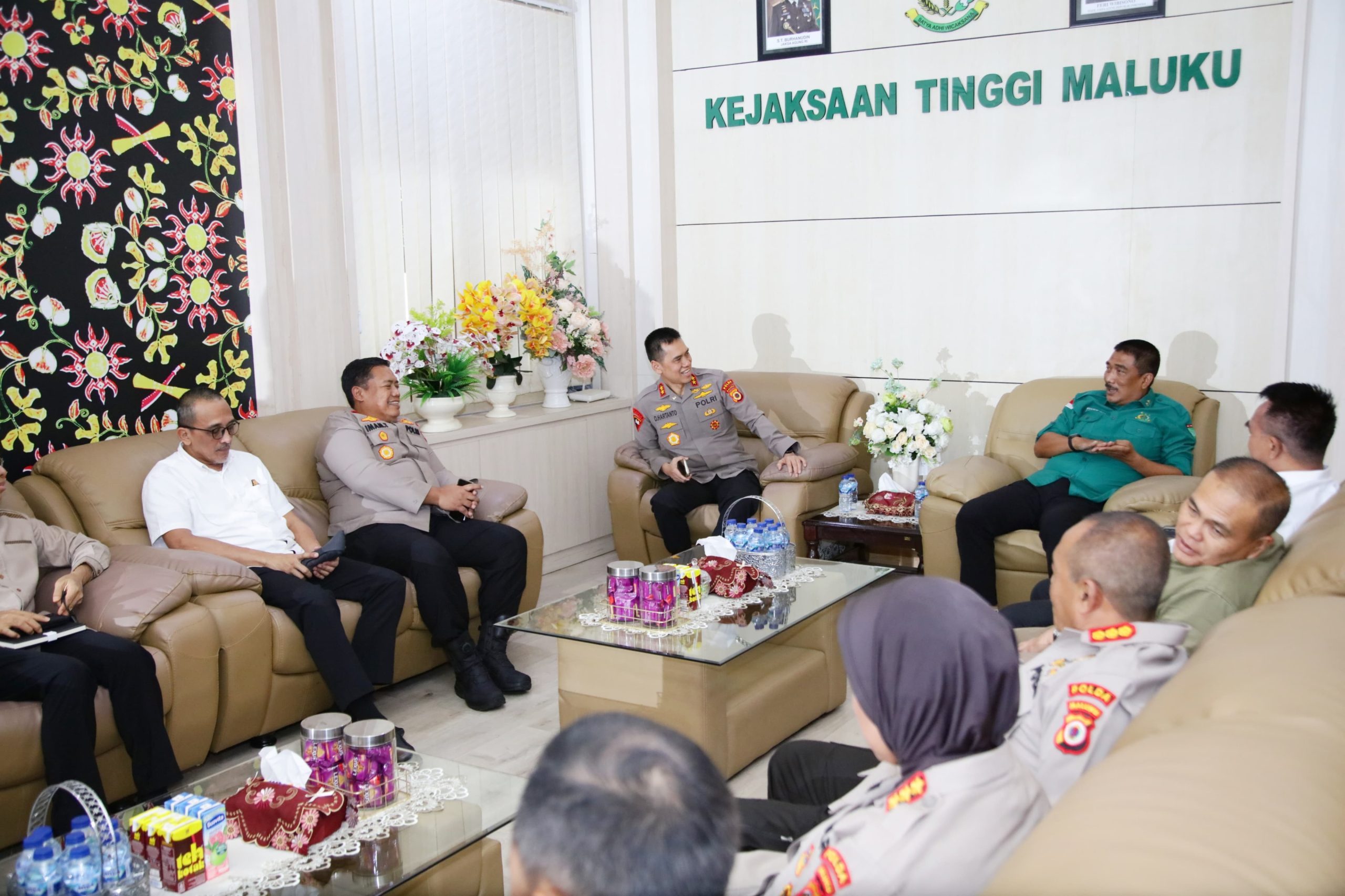 Pertemuan yang berlangsung dalam suasana akrab dan penuh kehangatan, ini bertujuan mempererat hubungan kelembagaan, memperkuat koordinasi, serta membangun komitmen bersama dalam penegakan hukum dan stabilitas keamanan di Maluku.