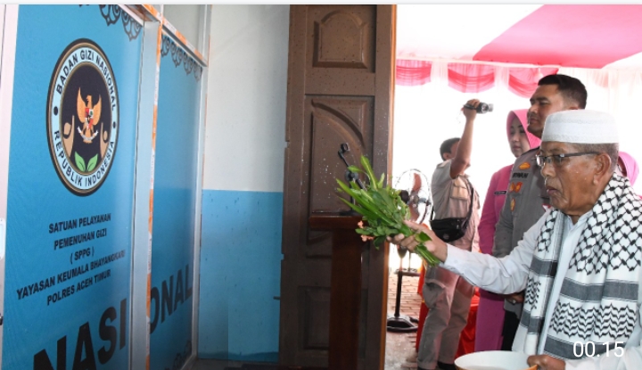 SUARAMASYARAKAT.COM.//Satuan Pelayanan Pemenuhan Gizi (SPPG) Yayasan Kemala Bhayangkari (YKB) Polres Aceh Timur yang berloaksi di Desa Blang Pauh Sa, Kecamatan Julok, Kabupaten Aceh Timur pada, Kamis, (02/10/2025) siang dipeusijuk oleh Pimpinan Dayah Darul ‘Atiq Tgk. H. Idris A. Jalil (Abu Julok).