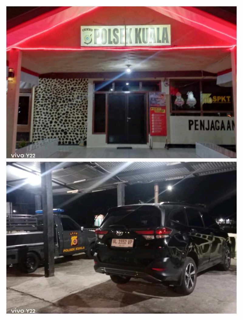 Photo diambil oleh awak media SuaraMastarakat com di Mapolsek Kuala saat mobil ditahan Kapolsek Kuala Iptu Zulkahar, saat photo diambil didampingi salah satu anggota Propam Polres Nagan Raya
