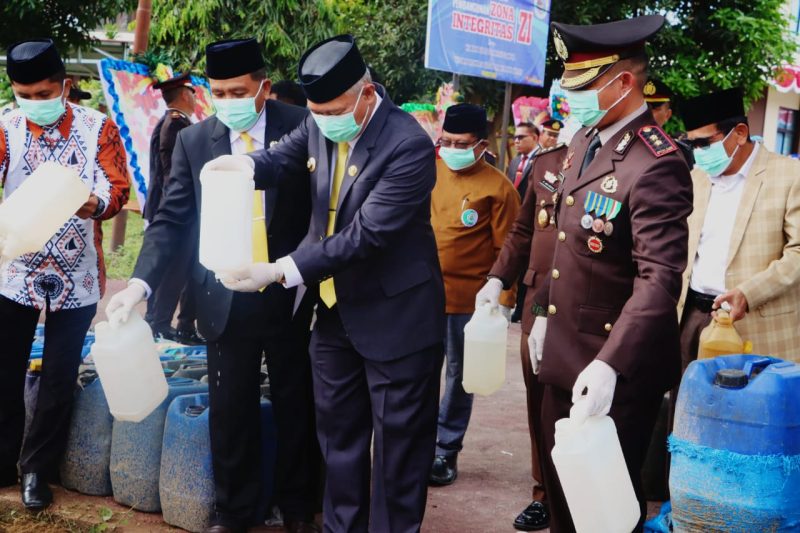 Kapolres Sigi, AKBP Kari Amsah Ritonga, S.H., S.I.K., M.H., memimpin langsung proses pemusnahan barang bukti miras, turut dihadiri jajaran Forum Koordinasi Pimpinan Daerah (Forkopimda) Kabupaten Sigi.