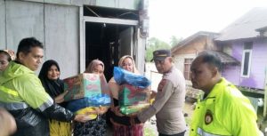 Bantuan berupa sembako diantar langsung oleh Kapolsek Darul Aman, Iptu Syamsu Bahri, S.H. bersama Camat Iskandarsyah, Selasa, (25/11/2025).