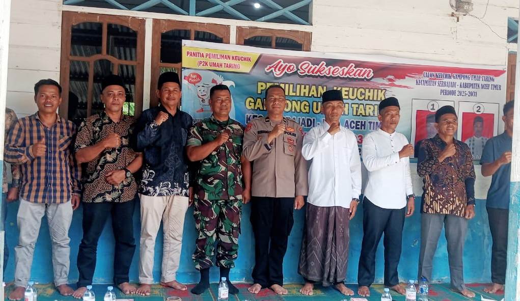 SUARAMASYARAKAT.COM.//Kapospolsubsektor Lokop, Polsek Serbajadi, Polres Aceh Timur, Polda Aceh, Ipda Suhirman, S.H. bersama unsur Muspika Kecamatan Serbajadi memantau langsung proses pemilihan Geuchik Definitif Gampong Umah Taring pada Sabtu, (27/09/2025).