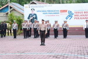 Bertindak sebagai Inspektur Upacara, Kapolres Parigi Moutong AKBP Dr. Hendrawan A.N., S.I.K., M.H. memimpin langsung jalannya kegiatan. Dalam amanatnya, Kapolres menegaskan bahwa peringatan Hari Pahlawan bukan sekadar seremonial tahunan, melainkan momentum untuk merenungkan kembali nilai perjuangan, pengorbanan, dan semangat pantang menyerah para pahlawan bangsa.