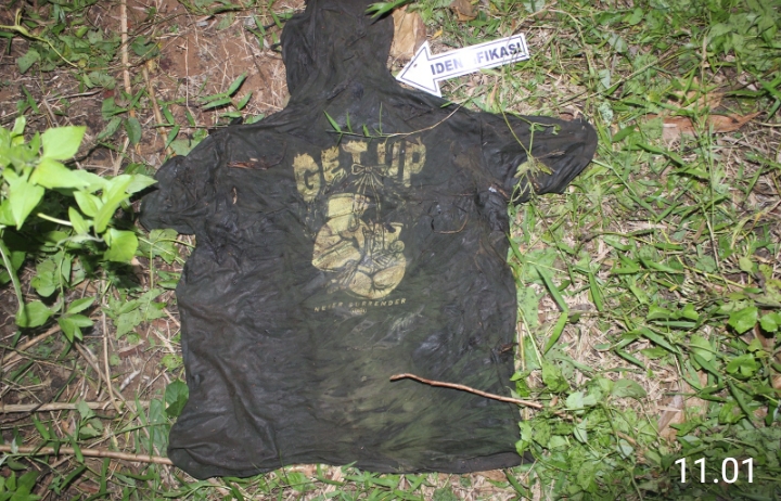 TKP berada di area kebun yang tidak terawat dengan semak belukar tinggi, menutupi pandangan dari luar. Saat ditemukan, bagian telapak kaki kiri dari jenazah tidak ditemukan di lokasi.