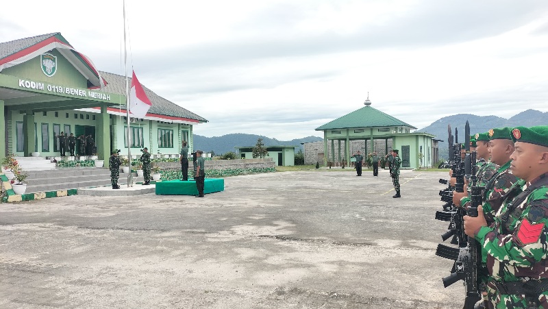 Bener Meriah, Aceh – SuaraMasyarakat.com // Kodim 0119/BM (Bener Meriah) – Dalam rangka memupuk kedisiplinan dan menumbuhkan jiwa patriotisme, Mayor Inf Trimo, S.H., Pasi Intel Kodim 0119/BM pimpin upacara bendera.