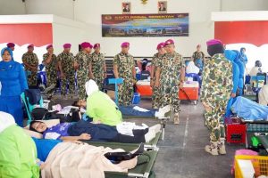 Dispen Kormar TNI AL (Surabaya) Dalam rangka HUT ke 80 Korps Marinir, Pasmar 2 yang merupakan Kolaktama Kormar di Kawasan Tengah Indonesia, menyelenggarakan kegiatan Bhakti Sosial, Bhakti kesehatan dan Donor Darah di Indoor Sport Kesatrian Marinir Sutedi Senaputra Karangpilang Surabaya. Rabu (05/11)