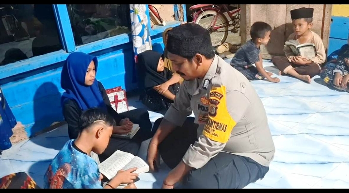 SUARAMASYARAKAT.COM//Bhabinkamtibmas Polsubsektor Lokop, Polres Aceh Timur, Polda Aceh, Bripka Abdul Aziz patut diacungi jempol, setiap ada waktu luang ia juga aktif menjadi guru ngaji bagi anak-anak di Desa Nalon, Kecamatan Serbajadi, Kabupaten Aceh Timur.