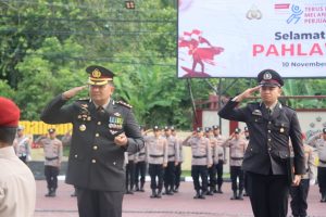 SUARAMASYARAKAT.COM/Kepala Kepolisian Resor Aceh Timur, Polda Aceh, AKBP Irwan Kurniadi, S.I.K. memimpin upacara memperingati Hari Pahlawan Nasional di Lapangan Apel Sarja Arya Racana, Senin, (10/11/2025) pagi.