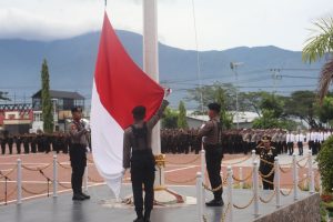 Bertindak sebagai Inspektur Upacara (Irup) Kapolda Sulteng Irjen Pol Dr. Endi Sutendi, S.I.K., S.H., M.H., yang diwakili oleh Wakapolda Brigjen Pol Dr. Helmi Kwarta Kusuma Putra Rauf, S.I.K., M.H..