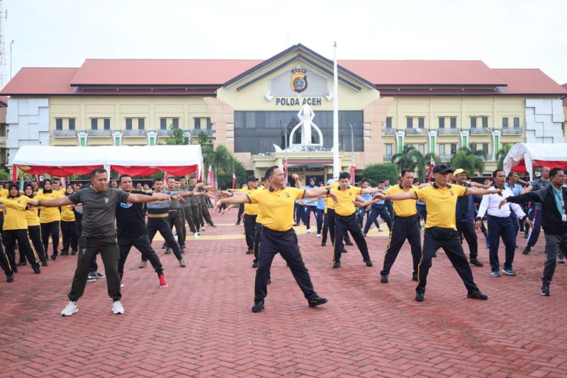 “Kegiatan olahraga bersama hari ini menjadi simbol nyata dari semangat kebersamaan dan sinergisitas antar-lembaga negara di Provinsi Aceh,” kata Irjen Pol. Dr. Achmad Kartiko.
