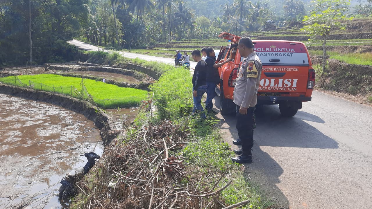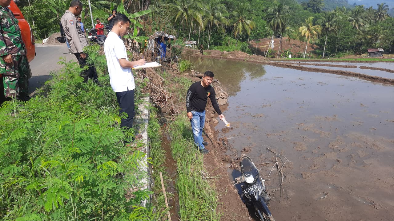 Menariknya, sepeda motor Honda Revo warna hitam bernomor polisi G 4773 GK juga ditemukan tertinggal di area sawah sekitar 600 meter dari lokasi kejadian. Motor tersebut kini diamankan sebagai barang bukti, bersama botol berisi sisa bahan bakar.