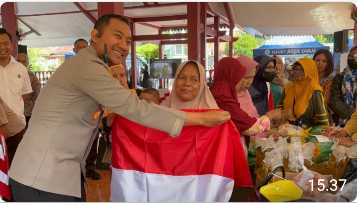 Selain itu, pada kesempatan tersebut juga dilakukan pembagian bendera Merah Putih gratis kepada masyarakat. Menjawab pertanyaan terkait hal ini, Kapolres menjelaskan: