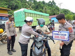 Polres Morowali Utara bagikan Helm dan Jaket Gratis kepada para pengendara