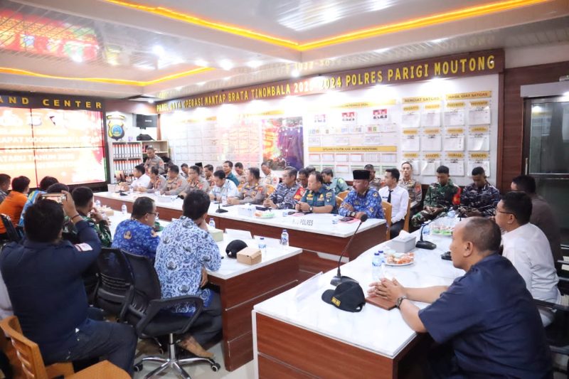 Parigi Moutong — Dalam rangka memastikan kesiapan pengamanan perayaan Hari Raya Natal 2025 dan Tahun Baru 2026 (Nataru), Polres Parigi Moutong menggelar Rapat Koordinasi (Rakor) Lintas Sektoral pada Rabu, 17 Desember 2025, pukul 09.00 Wita. Kegiatan tersebut berlangsung di Aula Sanika Satyawada (Command Center) Polres Parigi Moutong.