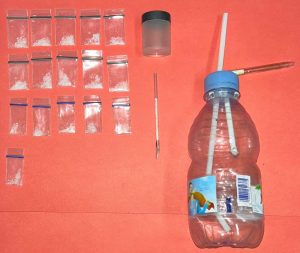 Petugas juga menyita 16 paket sabu dengan berat bruto 2,90 gram, beserta satu botol plastik kecil warna putih, satu sendok sabu terbuat dari pipet, dan satu alat isap sabu (bong).