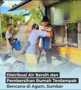 SUARAMASYARAKAT.COM//Sumatera Barat — Polri melalui Polda Sumatera Barat (Sumbar) terus menunjukkan komitmen kemanusiaannya dengan mendistribusikan air bersih ke sejumlah wilayah yang terdampak banjir dan tanah longsor. Pada Kamis (4/12), personel Kepolisian menyalurkan 401 galon air bersih untuk memenuhi kebutuhan harian warga yang mengalami kesulitan akses air layak konsumsi.