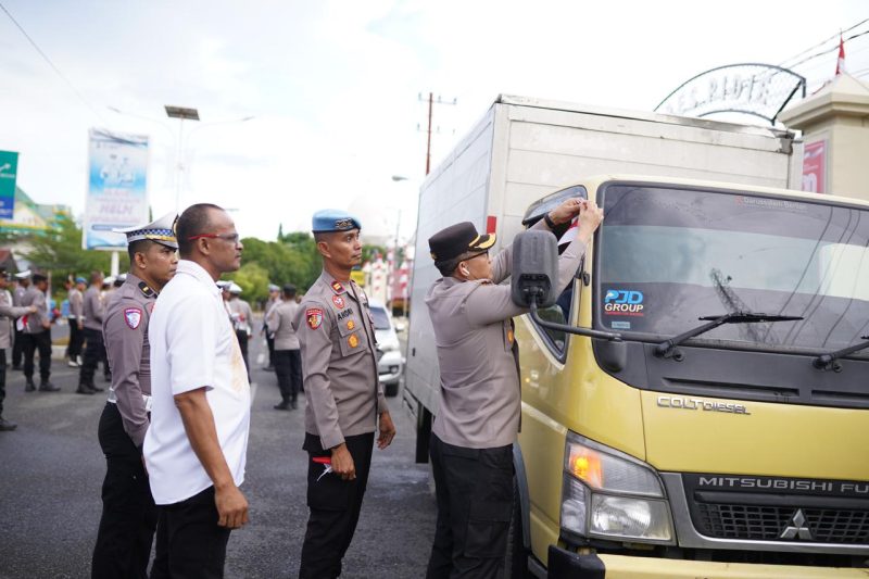 Sigli, Aceh – suaramasyarakat.com // Jelang peringatan Hari Ulang Tahun (HUT) ke-80 Republik Indonesia, Polres Pidie gelar aksi patriotik dengan membagikan dan memasang sebanyak 200 bendera merah putih kepada pengendara roda dua dan roda empat melintas di depan Mapolres Pidie, Rabu (6/8/2025).