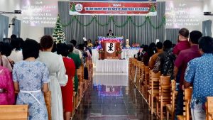 Ibadah Natal dipimpin oleh Pendeta I Wayan Darmadi, S.Th., dengan diikuti sekitar 300 jemaat dari Desa Dolago Padang dan sekitarnya. Tema “Allah Hadir Untuk Menyelamatkan Keluarga” diangkat sebagai pesan penguatan iman dan kebersamaan dalam keluarga.