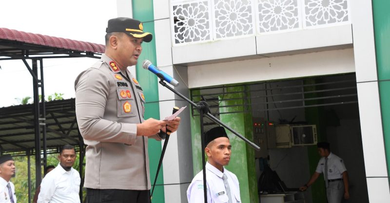 Aceh Timur – SuaraMasyarakat.com // Dalam rangka program “Saweu Sikula”, Kapolres Aceh Timur, Polda Aceh, AKBP Irwan Kurniadi, S.I.K. bertindak sebagai pembina upacara bendera di MAN Insan Cendekia Aceh Timur, pada Senin (15/09/2025), pagi. Upacara yang berlangsung di halaman sekolah tersebut diikuti oleh Kepala Sekolah, dewan guru dan staf serta seluruh pelajar MAN Insan Cendekia.
