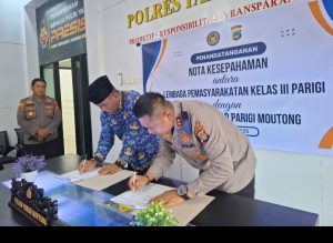 SUARAMASYARAKAT.COM//Parigi Moutong, 1 Desember 2025 – Upaya memperkuat sinergi pengamanan dan penegakan hukum di wilayah Parigi Moutong memasuki babak baru yang ditandai dengan penandatanganan Nota Kesepahaman (MoU) antara Kepolisian Resor (Polres) Parigi Moutong dan Lembaga Pemasyarakatan (Lapas) Kelas III Parigi.