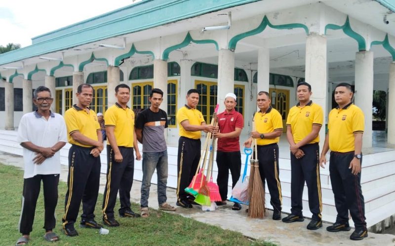 Usai Jum’at Bersih di Mesjid Baiturrahman Desa Naleung, Kapolsek Julok Serahkan Bantuan Sarana Kebersihan