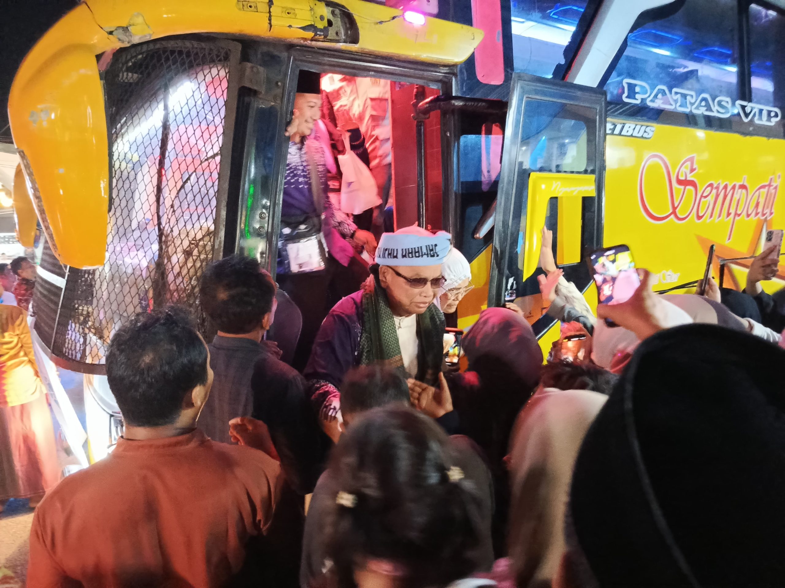 “Alhamdulillah, bapak ibu telah menuntaskan rukun Islam yang kelima dengan penuh perjuangan dan keikhlasan. Kami juga turut bersyukur dan bangga dapat menyambut kepulangan bapak ibu pada malam ini,” ungkap Jeffry Sentana.