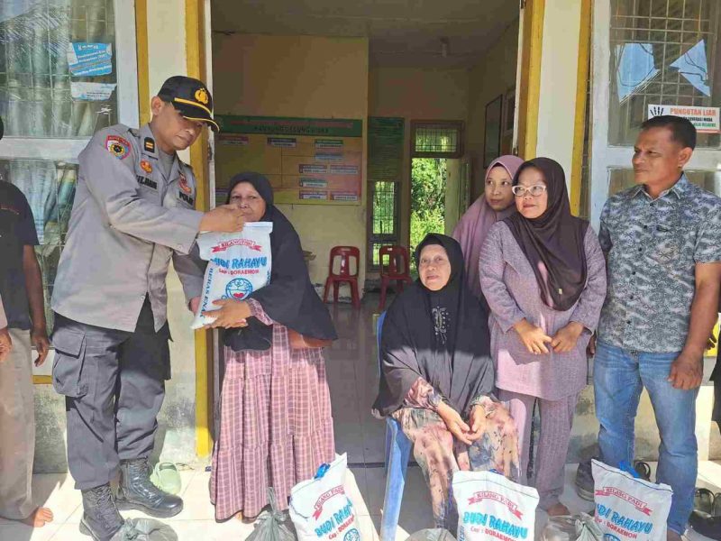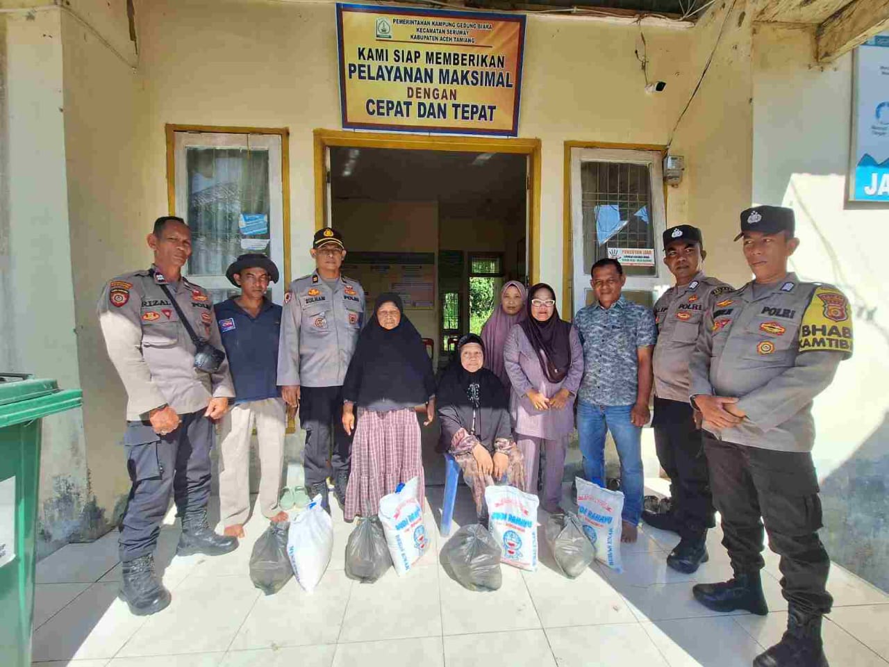 Giat berbasis sosial kemanusiaan efektif dilaksanakan itu kali ini disalurkan di Desa Gedung Biara, Kecamatan Seruway, Kabupaten Aceh Tamiang dipimpin Kapolsek Seruway, AKP T. Dave Yans, diwakili Wakapolsek, Iptu Zulham dan dibantu para personil Polsek Seruway, Jum’at, 04 Juli 2025.
