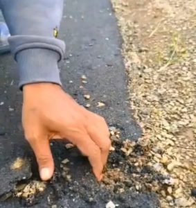 Berdasarkan pantauan dan laporan warga, aspal di beberapa titik terlihat sangat rapuh. Bahkan, dalam sebuah dokumentasi yang beredar, material aspal dapat dengan mudah dibongkar hanya menggunakan tangan kosong. Hal ini memicu kekhawatiran bahwa jalan tersebut tidak akan bertahan lama, terutama saat memasuki musim penghujan atau dilalui kendaraan berat.