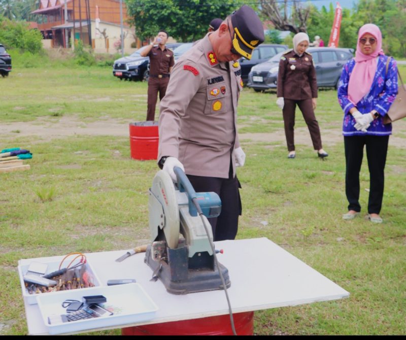 Sigi, Sulteng – suaramasyarakat.com //Kapolres Sigi, AKBP Kari Amsah Ritonga, S.H., S.I.K., M.H. menghadiri kegiatan pemusnahan barang bukti (BB) tindak pidana telah memiliki kekuatan hukum tetap (inkracht), bertempat di halaman Kantor Kejaksaan Negeri (Kejari) Sigi, Jln Poros Palu – Kulawi Desa Maku, Kecamatan Dolo, Kabupaten Sigi, pada Kamis (10/7/2025).